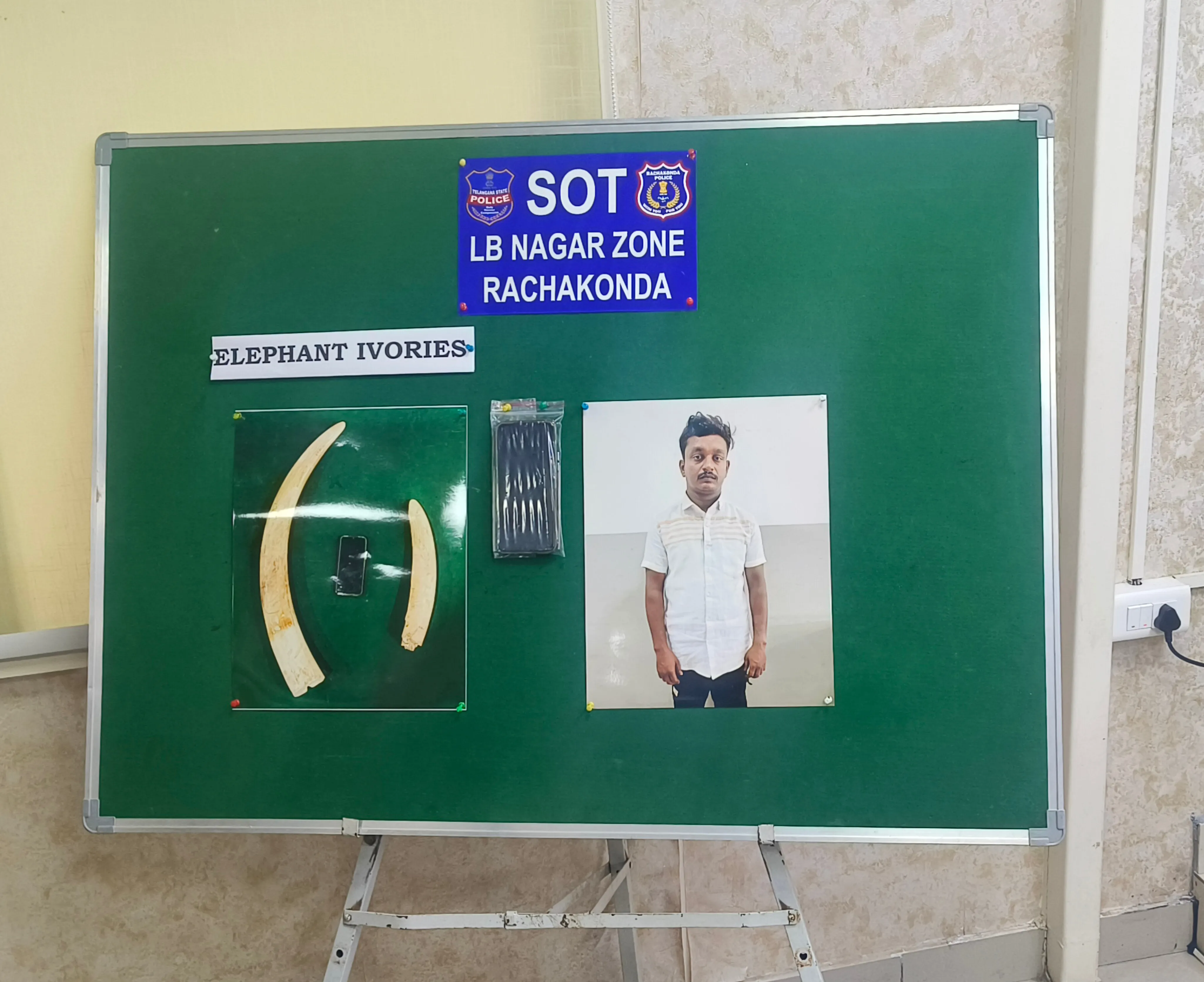 ఎల్బీనగర్ , జూన్ 25, (నగర నిజం): రాచకొండ పోలీసుల ప్రత్యేక ఆపరేషన్ టీం (ఎస్ఓటి) ఎల్‌బీ నగర్ జోన్, హయత్‌నగర్ అటవీశాఖ అధికారులతో కలిసి ఎనుగు దంతాల (ఎలిఫెంట్ దంతాలు) అక్రమ రవాణాకు పాల్పడుతున్న ఓ వ్యక్తిని అరెస్టు చేశారు. అతని వద్ద నుంచి రెండు ఏనుగు దంతాలు, ఓ మొబైల్ ఫోన్‌ను స్వాధీనం చేసుకున్నారు.