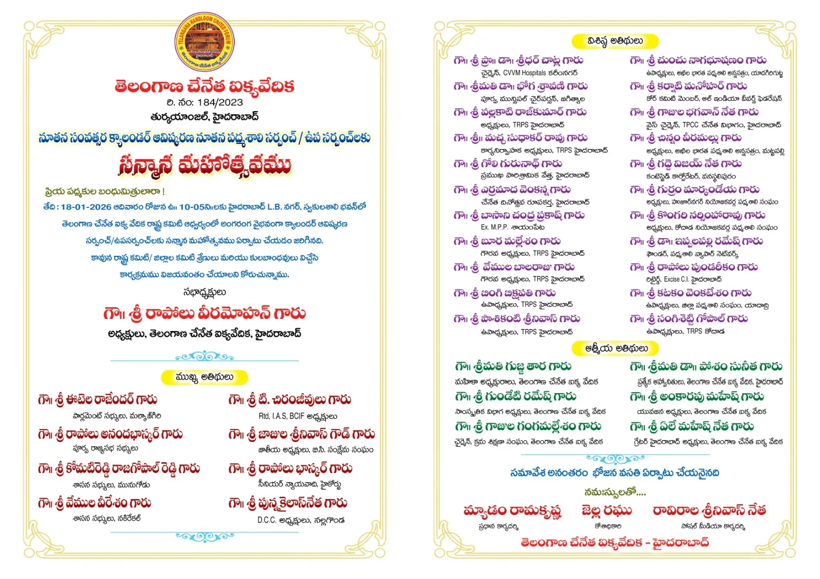 తెలంగాణ చేనేత ఐక్యవేదిక ఆధ్వర్యంలో క్యాలండర్ ఆవిష్కరణ, పద్మశాలి సర్పంచ్ ఉపసర్పంచ్లకు సన్మానం