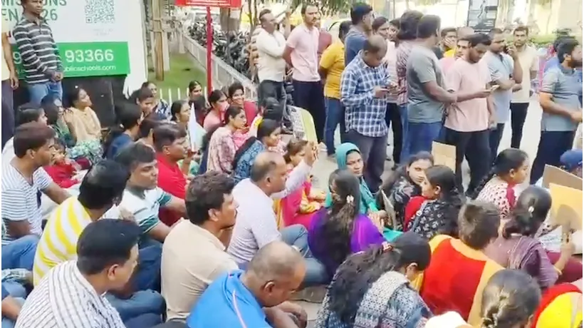 పెంచిన ఫీజులు తగ్గించాలి సిద్ధార్థ పబ్లిక్ స్కూల్ వద్ద విద్యార్థుల తల్లిదండ్రులు ఆందోళన